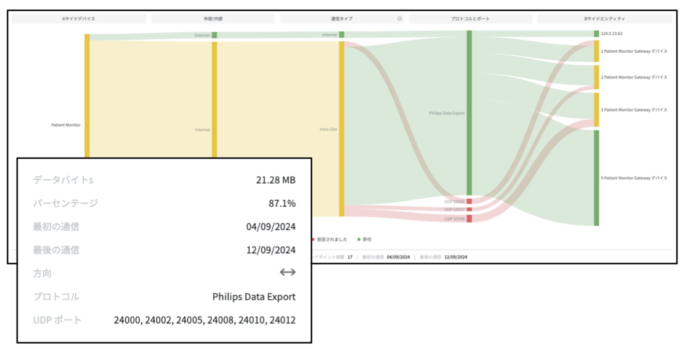 院ネットワークに直接接続されているファイアウォールの資産を発見し、視覚化します。また、エージェントを使用せずに院内トラフィック